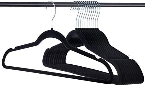 Amazon Basics Slim Velvet Non-Slip Suit Clothes Hangers Pack of 100 Black Silver