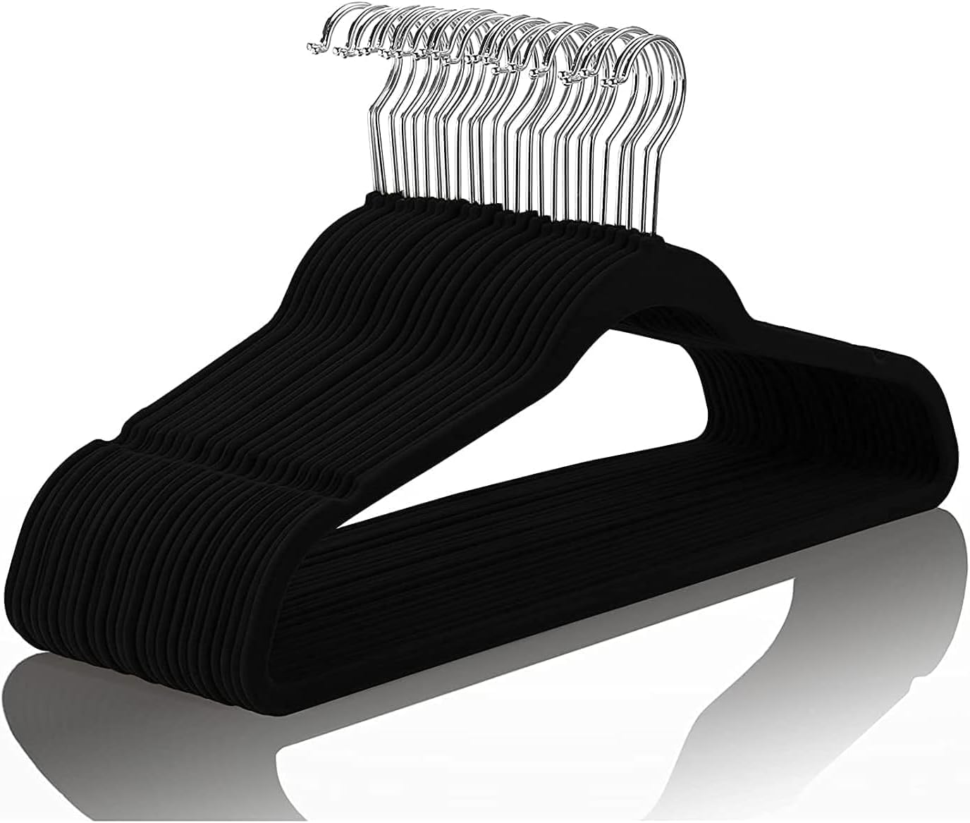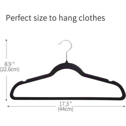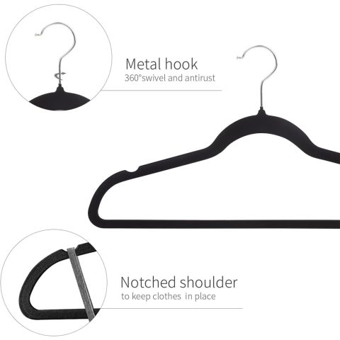 ManGotree 100-Pack Black Non-Slip Velvet Hangers 45cm With 360 Degree Rotatable Hook