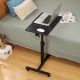 An adjustable overbed table designed for effortless laptop use, reading, or snacking—featuring smooth-rolling wheels, safety edge stopper, and a sturdy MDF top with a durable metal frame