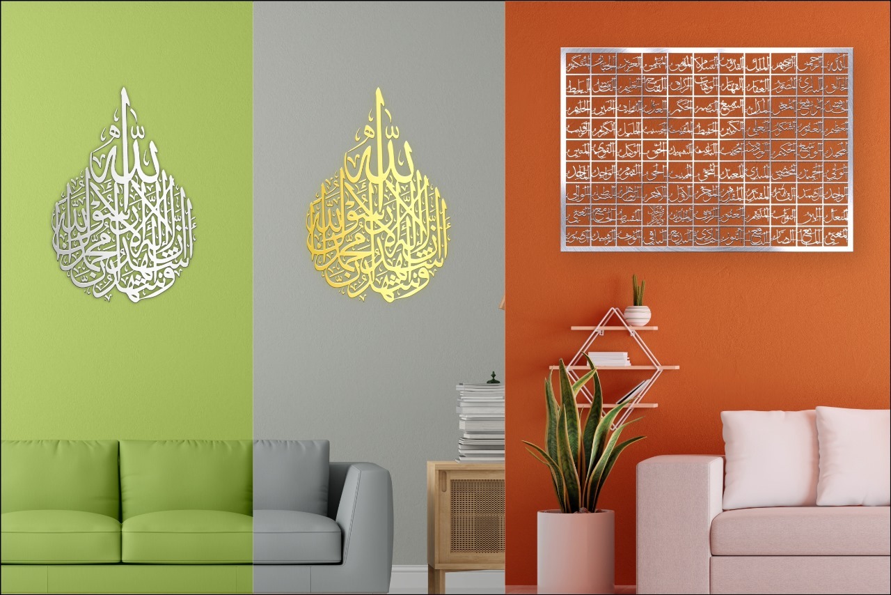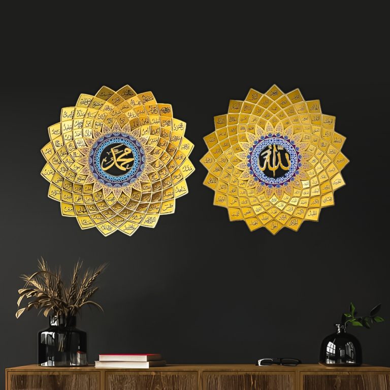 3D Metal Asma Ul Husna & Asma Un Nabi Wall Art Set of 2